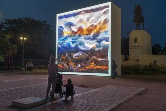exposition dans le parc du Champs-de-Mars d’Athènes La Fondation Onassis s’installe de nouveau cette année au Champs-de-Mars d’Athènes (que l’on appelle en Grèce à Pedion tou Areos) avec