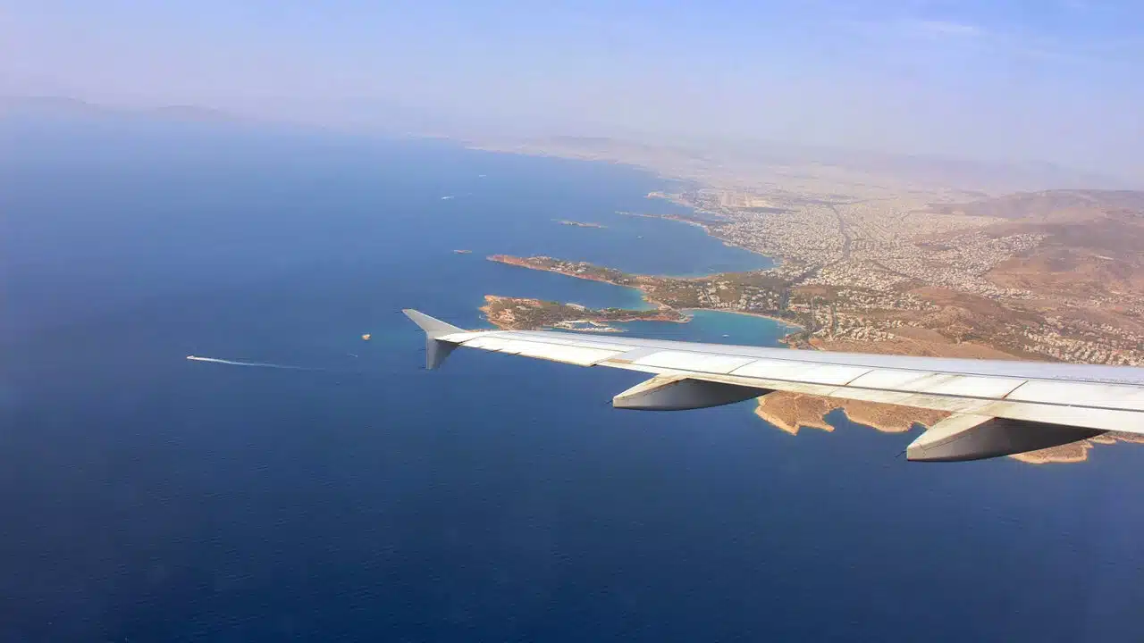 Le vol est direct de Lyon à Athènes (2:30) et je suis toute seule sur ma rangée : tranquille ! Par le hublot je vois défiler les Alpes, Turin, Rimini, Ancona, Naples, Bari, Brindisi, Corfu puis enfin Athènes. A mon arrivée à l’aéroport d’Athènes je saute dans le bus X96 pour une heure et demie de route jusqu’au port du Pirée. C’est long. Pourtant le bus roule vite mais il faut traverser tout Athènes pour rejoindre le port et la circulation est dense. Scooters, voitures… le piéton n’est pas légion !